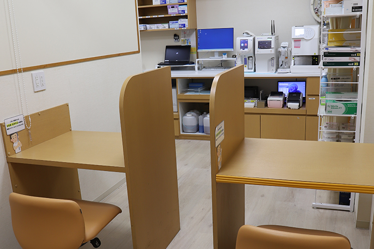 院内紹介 クリニック内のご紹介です。 受付 オープン受付カウンターで患者さんと 対話しやすい受付となっております。 診察室 待合 やさしい間接照明と 木のぬくもりが感じられる待合です。 待合 採血室 栄養相談室 レントゲン室
