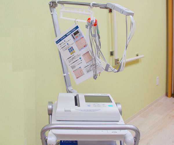 心電図に記録された波形とリズムから、不整脈や心筋梗塞などの疑いがないか検査します。